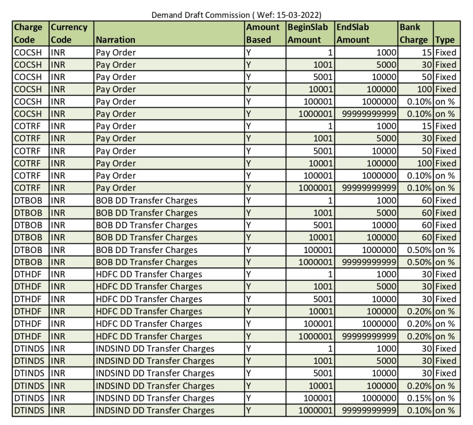 Applicable Charges For Demand Draft Commission
